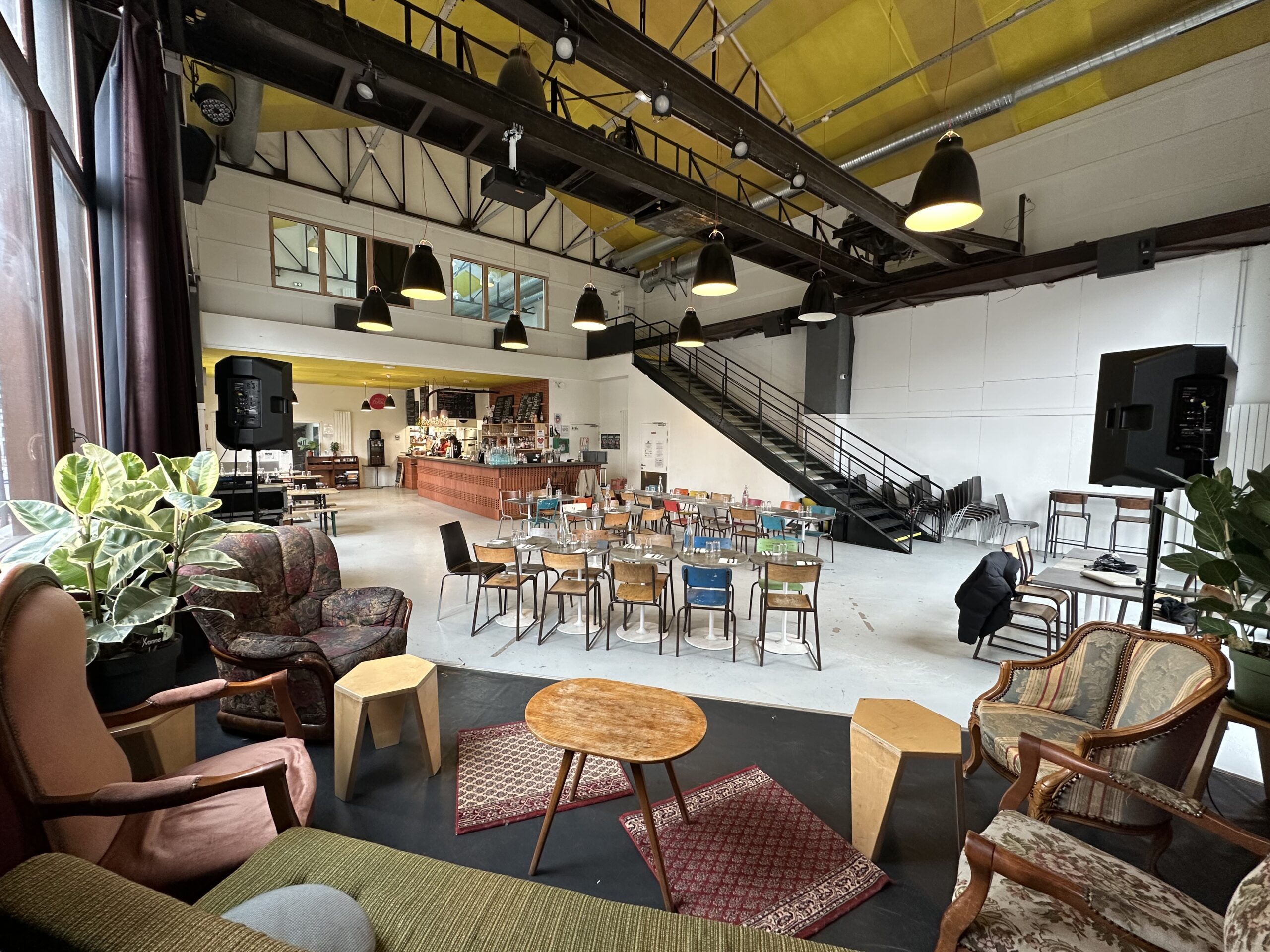Au rez-de-chaussée, vous trouverez La Textilerie, lieu créatif dédié à la revalorisation du textile doté d’une friperie et d’un atelier proposant des cours de couture. Vous pouvez aussi y donner vos vêtements inutilisés.